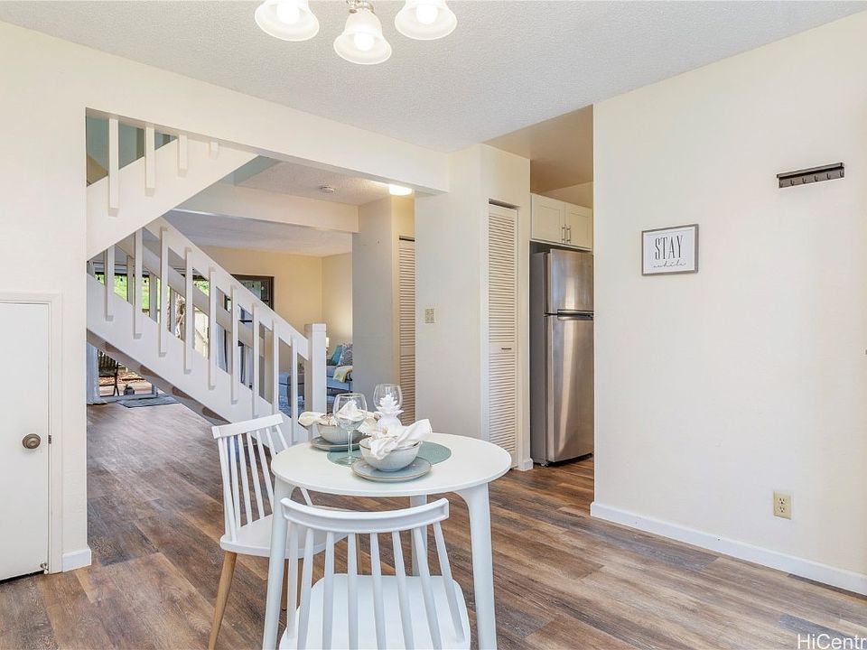 This charming 3-bedroom, 2.5-bathroom townhome located in Mililani at Nob Hill offers a delightful living experience. As you step inside, you'll be greeted by an updated white kitchen adorned with quartz countertops, stainless steel appliances, and abundant natural light, creating an inviting atmosphere. The living space seamlessly transitions to a spacious lanai, perfect for enjoying indoor/outdoor living and entertaining guests. Upstairs, the primary suite provides a comfortable retreat, complemented by two additional bedrooms and a full bath. The townhome's close proximity to restaurants, shops, and schools adds convenience and accessibility to everyday amenities and activities, making it an ideal place to call home.