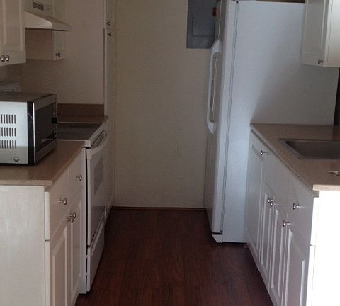 Very nice and clean, 2 bedroom, 1 bath and 1 covered parking stall, ground floor, corner unit townhome for rent. Includes laminated wood flooring throughout the townhome, the bathroom has ceramic tile flooring. Includes an air conditioner unit in every room, ceiling fan in living room, stove, refrigerator, and full washer and dryer. Rent includes water. Does not include electric, gas and cable. Sorry, please no smoking and no pets. Currently available. Renter is responsible for gas, electric, internet and cable. No pets and no smoking. 1 covered parking included.