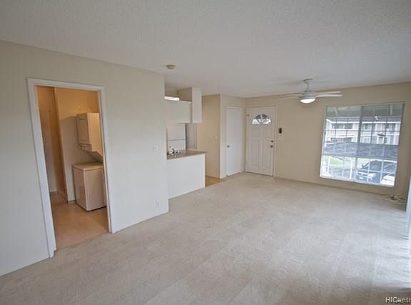 For rent - Royal Palm at Waipio - Upstairs, end unit with one covered parking stall. Washer/dryer in the unit, window unit AC, carpet and vinyl floor. No pets, no smoking allowed inside unit. Complex has pool, bbq, club house and resident manager. Close to Waikele Outlets, shopping and schools.
