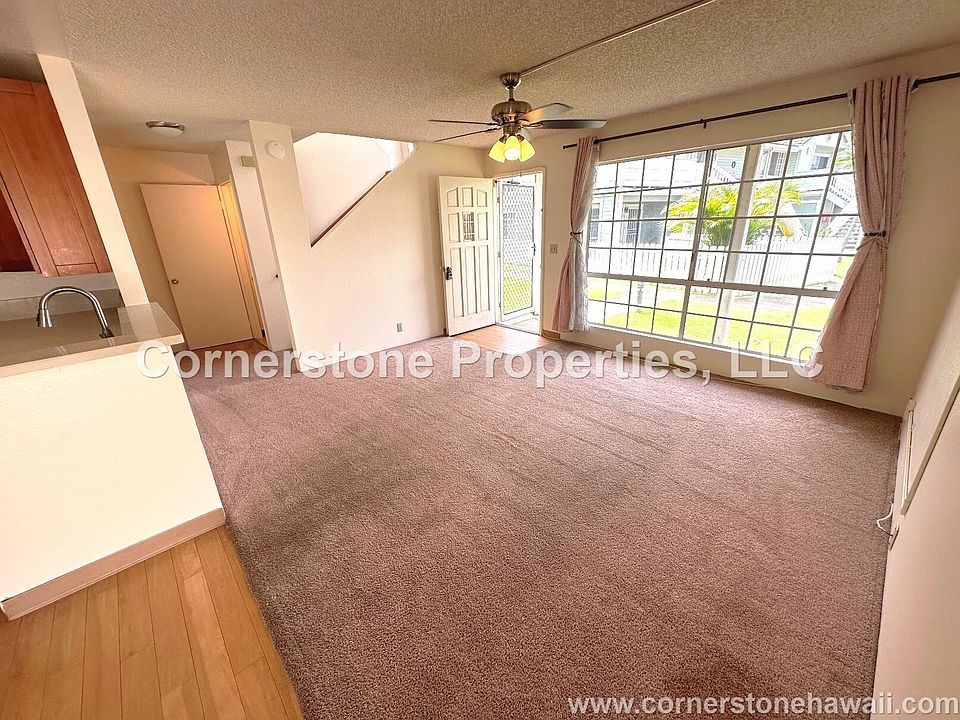 Enjoy living in this partially furnished, 2 bedroom, 1 full and 2 half bathroom, 1 parking townhouse in Waipio. This unit is near Costco, schools, shopping center, parks, and restaurants. PROPERTY DETAILS: - Unit Type: Townhouse, 2-story, end unit - Approx. Square Footage: 902 - Year Built: 1987 - Bedrooms: 2 - Bathrooms: 1 Full and 2 half baths - Parking: 1 Parking Stall AMENITIES: - Pool - Playground - Carwash - 24-hour Security - Resident Manager UNIT FEATURES: - Laundry Center - Dishwasher - Disposal - Refrigerator - Electric Stove/Oven - Microwave Rangehood - Split AC in Living Room and Bedrooms - 2 Ceiling Fans in Living Room and Dining Room - Fenced Patio - Storage Closet - Window Coverings: Curtains & Curtain Rods - Flooring: Carpet and Laminate UTILITIES: - Included: Water/Sewer - Tenant responsibility: Electricity, Cable, Internet, Phone, Pest, & Gas (if applicable). LEASE TERMS: - No smoking - Sorry, No pets. - Available Now - Lease Length: 6 months - 1 year - Renter's insurance required: with $300,000 liability coverage and Cornerstone Properties listed as additionally insured. - Professional cleaning will be required upon move out by an approved vendor of Cornerstone Properties. - All adults 18 years old and older must apply. - Application fee: $30 (Non-refundable) PROPERTY CODE: 638WRI Cornerstone Properties, LLC: RB-20789 *DISCLAIMER: Cornerstone Properties is not responsible for any inaccuracies or misprints on this website or other subsequent websites and reserves the right to make changes without notice. Our rental units are considered available until an applicant is approved, the security deposit is paid, and the lease is executed. Please be advised that although a property is listed as available, it could be in the process of a lease signing or may have just been rented. Please call our office to inquire.