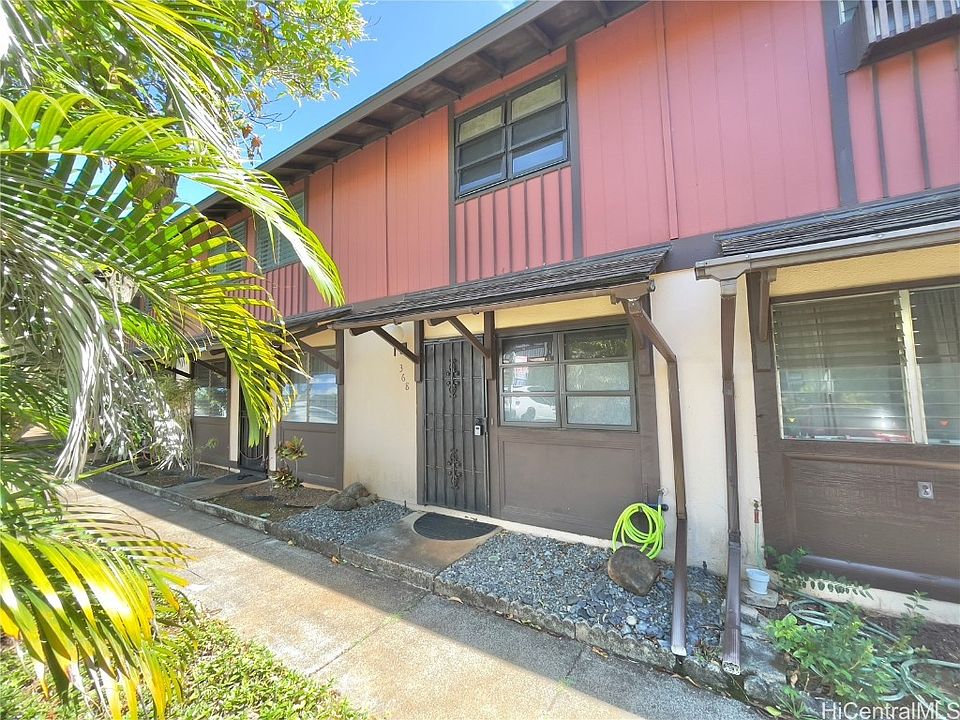 PRICE REDUCED TO SELL!! Offering VA Assumable loan at the rate of 2.75% for eligible VA Buyers. Welcome home to this spacious 2-bedroom, 1.5-bath townhome in Mililani's Nob Hill community. This gorgeously renovated home features modern vinyl flooring on the lower level, creating a sleek and contemporary living space. The upstairs bedrooms are equipped with mirrored closets, ceiling fans, and window A/C units for your comfort. The functional kitchen is designed with stainless steel appliances, a built-in kitchen counter, and a garbage disposal, making meal preparation a breeze. Step outside into a fenced backyard with a patio area, perfect for relaxing or entertaining. Additionally, the backyard transitions to a walking trail, offering a seamless blend of indoor and outdoor living. Enjoy the convenience of parking spaces located right in front of the unit. The super convenient location provides easy access to Highways, local shopping, dining, parks, and well-known schools. Mililani Town Center is just 0.4 miles away, offering a variety of amenities within walking distance. Take advantage of Mililani's multiple recreation centers and swimming pools. VACANT, EASY TO SHOW.