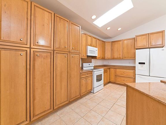 The kitchen features custom cabinetry for the Organizer's dream! Every inch of space is put to good use. The island kitchen has a granite countertop and "breakfast bar". There is room enough for both a separate living and dining area.