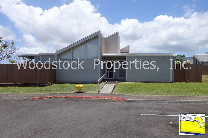 Beautiful, Open, 3 BD, 1.5 BA Town House in Mililani! ALL GROUND LEVEL, No bedrooms upstairs. First Time on the rental market, owner occupied since 2000, first person to view this property will take it! Freshly painted, brand new gray wood-like planking on floors. Vaulted ceilings, huge laundry room. Bright, cheerful kitchen with refrigerator, range/oven, dishwasher, microwave, double stainless steel sinks. 4 Split A/C's. Cool trades flow through the house. 2 very private lanai's, one covered and one uncovered. The enclosed lanai acts like a family room from the living room. Ramp located at the entrance of the home. Water, sewer, trash, association fees, sales tax are all included in the rent. 1 year lease with 'military clause', good credit and renter's insurance required. No pets, No smoking permitted. $20 application fee per adult.