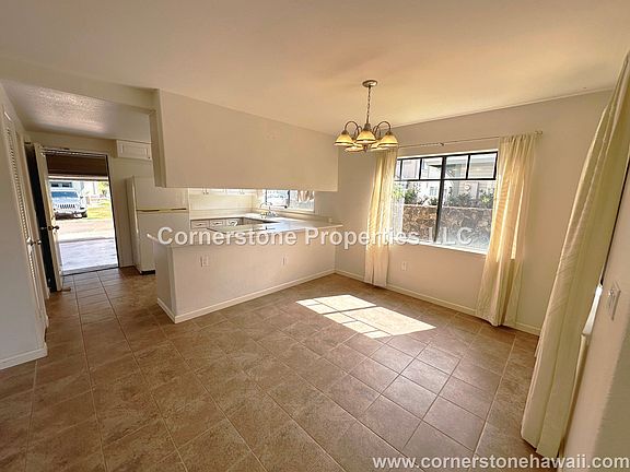 Enjoy living in this 3 bedroom, 2.5 bathroom, 2 parking partially furnished 2-story family home in Royal Kunia. This unit is near schools, shopping center, parks and restaurants. PROPERTY DETAILS: - Unit Type: 2-story Family House - Approx. Square Footage: 1256 - Year Built: 1995 - Bedrooms: 3 - Bathrooms: 2.5 - 2 Car Garage UNIT FEATURES: - Full size Washer and Dryer - Dishwasher - Disposal - Refrigerator - Electric Stove/Oven - Range Hood - Window AC in Primary Bathroom - 3 Ceiling Fans in Living Room and Guest Bedrooms - Open Back Yard - Window Covering: Curtains - Flooring: Carpet and Ceramic UTILITIES: - Included: Yard Service - Tenant Responsibility: electricity, cable, water/sewer, phone, internet, pest, gas (if applicable), & yard service. LEASE TERMS: - No Smoking - Sorry, No Pets - Available Now - Lease Length: 1 year - Professional cleaning required upon move out by an approved vendor of Cornerstone Properties. - Renter's Insurance Required: with $300,000 liability coverage and Cornerstone Properties listed as additionally insured. - All adults 18 years old and older must apply. - Application fee: $35 (non-refundable) PROPERTY CODE: 197MAR Please 'Like' and follow us on our Facebook page. Cornerstone Properties, LLC: RB-20789 *DISCLAIMER: Cornerstone Properties is not responsible for any inaccuracies or misprints on this website or other subsequent websites and reserves the right to make changes without notice. Our rental units are considered available until an applicant is approved, the security deposit is paid, and the lease is executed. Please be advised that although a property is listed as available, it could be in the process of a lease signing or may have just been rented. Please call our office to inquire. All availability dates are approximate and not guaranteed.