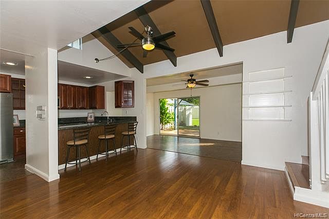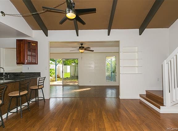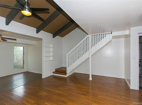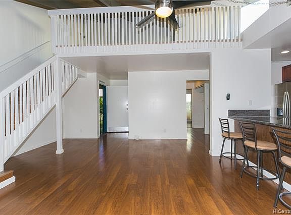 Kealohi Hale town homes are rarely available and when they are, they go fast! 2 bedroom, 1 bathroom with an add on for additional living area under roof. Good size back yard for BBQ or pet fully fenced with gate to lead to common area open field. Kitchen has granite counter tops, cherry cabinets and stainless steel appliances. solar system to help with the expense of electricity. Large loft area to convert into an office or game room. Air conditioners in the bedrooms and ceiling fans in the main living area. Floors are laminate wood through out with tile in the bathroom and kitchen. Master bedroom has a sliding door that leads out to another yard and a walk in closet. Second bedroom is good size with a large closet. Storage closet in the living area plus under the loft stairs.