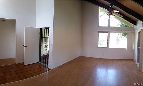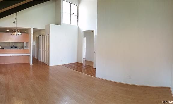 The town home contains 3 bedrooms, 1.5 bathrooms and 2 parking spaces in Mililani Town. The unit has 1088 square feet of interior living space with additional space provided by a large patio. The yard is enclosed by a wooden fence. Mililani is a beautiful planned community complete with parks, shopping, transportation and organized sports. This town in the center of the islands provides a quiet community with exceptional schools close to Wheeler Airforce Base and Schofield Barracks. This unit has been renovated. The interior has been painted and the flooring is laminate. The bathrooms have also been refurbished.