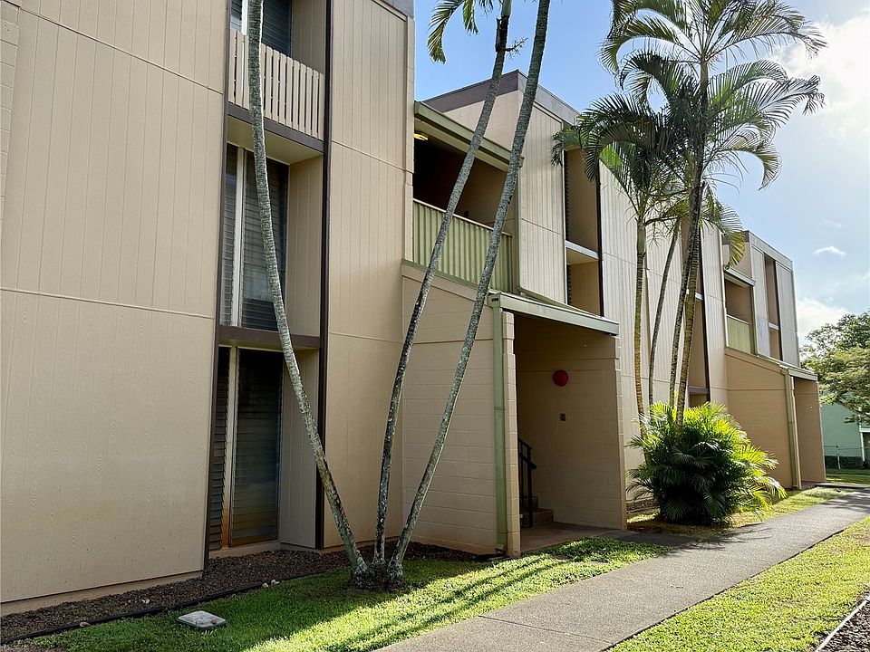 Ground Floor corner unit at Hokuahi Apts. that opens out into a nice lawn area. This 2-Bedroom / 1-Bath. was remodeled over the years with updated kitchen & laminate flooring. Unit comes with 1 assigned parking and there are 15 guests stalls. Across from Mililani Market Place shopping center.