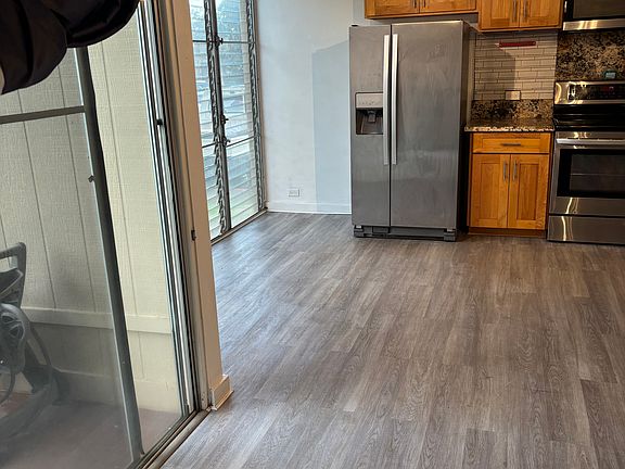 Save some of your hard earned money and discover this beautifully upgraded ground-floor corner unit in the heart of Mililani. The condo features luxury vinyl flooring throughout, a modern kitchen equipped with granite countertops, tile backsplash, newer cabinets, and stainless steel appliances. The living room boasts a stone accent wall, adding a contemporary touch to the space. The bathroom is enhanced with Brazilian slate shower walls and a stylish concrete countertop with dual sinks. 8 minute drive to wheeler air force base and 10 minute drive to Schofield with no morning traffic! 5 minute drive to UFC gym mililani and 24 hour fitness. Partly furnished and will take out furniture before move in if requested. No smoking, firsts months rent due at move in, tenant must pay utilities, tenants must sign 1 year leasing contract