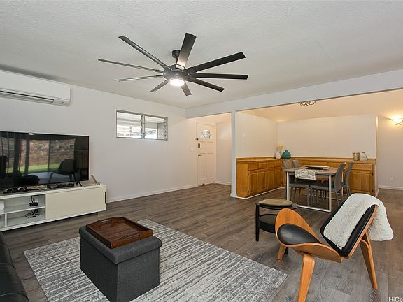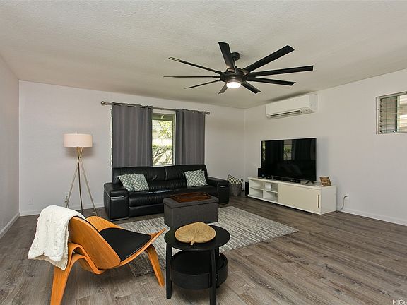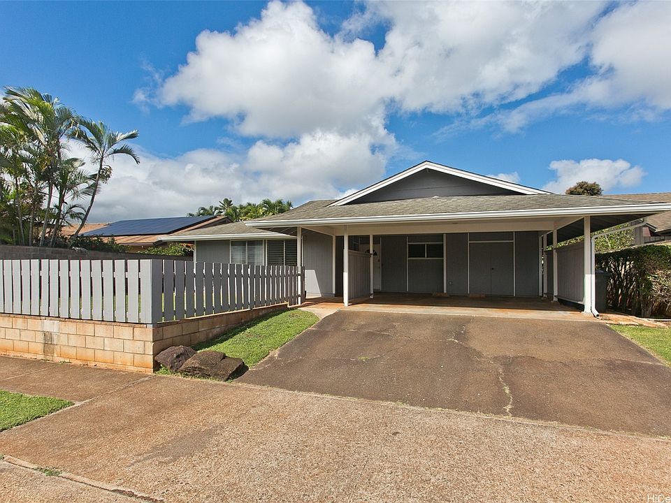Desirable Mililani. Single level with open floor plan. 3 bedrooms, 2 baths in excellent condition. Clean and ready to move in! Upgrades include: renovated kitchen and bathrooms, large split ac in living room, newer appliances, vinyl plank flooring throughout, ceiling fans. Popcorn ceiling removed/drywalled finished. Landscaped, front and back. Terraced back yard tastefully done. You can make this back yard your own. Irrigation does not work and sold in as is. Sellers water yard manually when needed. Carport can fit 2 cars and room to also park on the driveway. Storage closet in carport. Home is located in the beginning of a Culdesac. Mililani Town Association fee $165 quarterly. Multiple Recreational Centers for use.