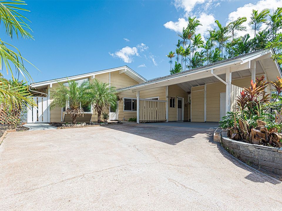 Very spacious 3 bedroom 2 bath home located on a pleasant cul-de-sac in Mililani. Single story home with a large covered patio and wonderful natural light throughout. The home features Split and window AC, vaulted ceilings, barn doors, laundry room, walk-in closet, and laminate and natural stone tile flooring. Roomy enclosed