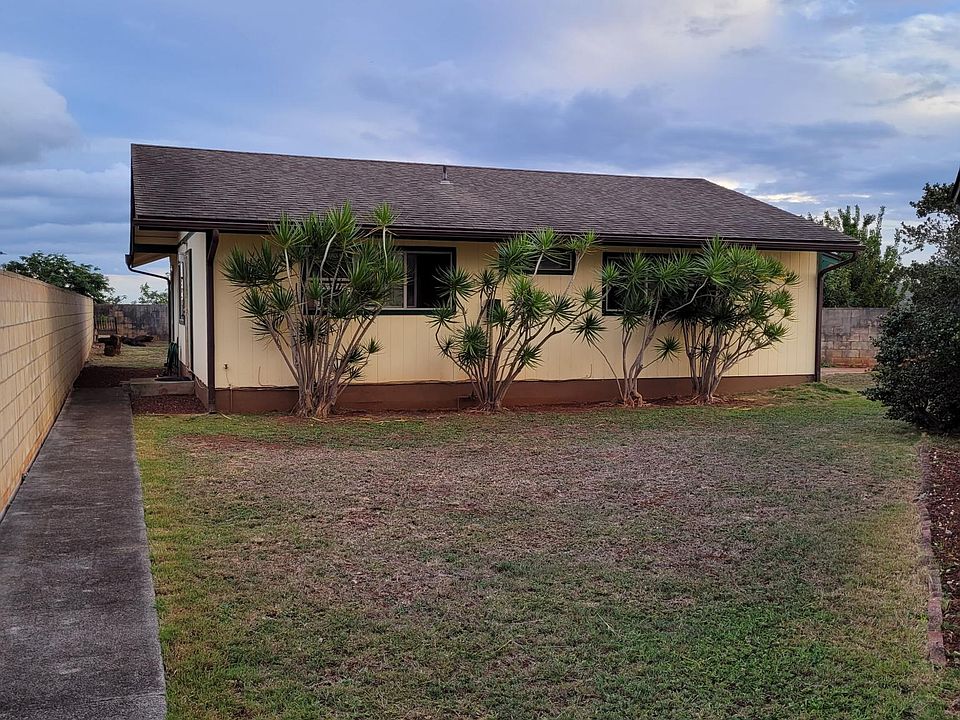 Very Private and Cozy Cottage Style 2BR Rental. Open living/dining room for entertaining. Over 250sf Patio space (soon to be resurfaced). New Split AC system installation scheduled in Dec. Close to military installations (Wheeler AAF and Schofield Barracks). Walking distance to Mililani Elementary School. Theatre, Shopping, Grocery Stores and more close by. Large yard enclosed with Vinyl Fencing. Yard service included in rent. Property not visible from street (private entrance accessible next to Main House) Renter responsible for water/sewer/electricity. Pets subject to approval. Pet deposit may apply