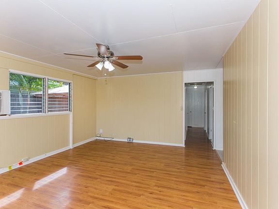 This older well maintained Waipahu home for rent: 4 bedroom 1 1/2 bath; ceiling fans throughout; 3, AC window units to keep you cool. two-car carport with plenty of storage. 1667 square ft. of living area which includes a large (600 sq. ft.) Rec room area and an additional room off the Rec area that could be used as an office or another bed room. Convenient location, less than 10 min drive to Waikele Premium Outlet and shopping center. Nice, very family oriented neighborhood. This is a must see Won't last long. Owners pay utilities, 6 month lease