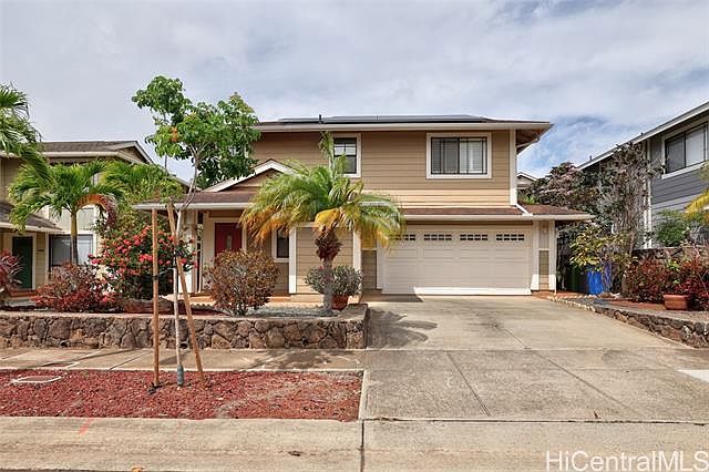 Pride of ownership shines in this beautiful three bedroom, two and a half bath home located within the Royal Kunia community. The home offers an open floor plan with a spacious living and dining area, den, and a loft study on the second floor. The property features upgraded flooring, lighting, plantation shutters, split air conditioning units, a primary bedroom with a walk in closet and ensuite with dual sinks, and so much more. 2023-03-21
