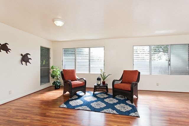 Beautifully renovated 3 bedroom 2 bath home with spacious bonus recreation room and lave covered lanai In back perfect for entertaining. Wood laminate flooring , freshly painted and A/Cs throughout . In a desirable Mililani area, close to shopping and eateries.