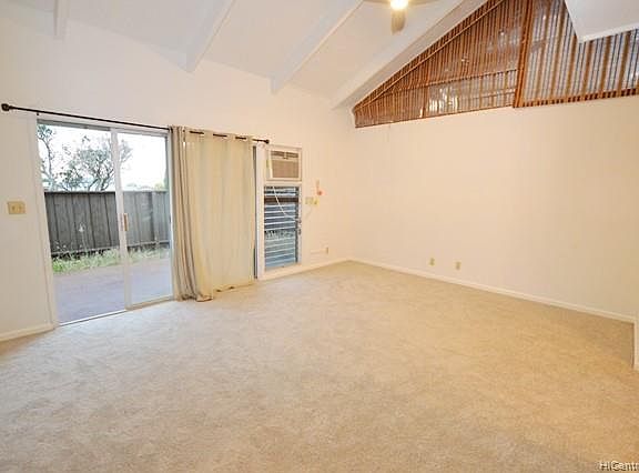 Spacious 2 bed, 1 bath unit in desirable Mililani. Short walk to Mililani Uka Elementary and District Park. Just a few minutes away from Wheeler/Schofield. Unit has a full size washer & dryer, Refrigerator, new carpet, window AC in Living Room, and a bonus loft! Spacious layout with lofted ceilings in the living room and 2 courtyards! Water/Sewer is included in rent. All other utils are tenant responsibility. No pets and no smoking. Initial lease is 6 months as this unit is in pre-foreclosure status. Once the foreclosure process starts, title usually transfers to new owner within 6 to 12 months. Avail ASAP. Combined income must be at least 3 times the rent amount. $20 application fee per adult. Call or email Robert with questions and showing requests...