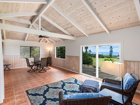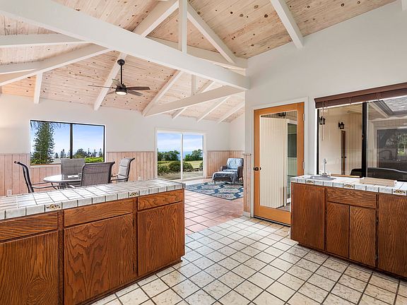 This home is positioned for optimal views and the warm gentle breezes, extremely private setting, East & roadway side of the home are lushly planted with tropical edibles, mac nuts, papaya, avocado, citrus.