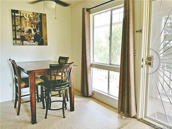 Gorgeous views. 2-bedroom, 2-bath, 2nd floor corner unit with beautiful serene mountain & garden backdrops and the Kunia Golf Course. Newer A/C, plumbing fixtures, ceiling fans, newly installed security screen door, and new water heater, and a new stainless steel refrigerator. Highly desirable floor plan recently painted with double doors that lead to your master bedroom. Parking stalls are located close to the unit. Pet-friendly community. Conveniently located near the Waikele Shopping Outlets and easy-access to the freeways and military bases. Owner-occupied, but easy to show.