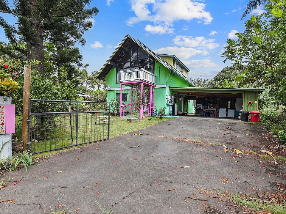Experience the perfect blend of comfort, sustainability and natural beauty in this wonderful Naalehu home. Built in 1972 this home combines vintage charm with modern conveniences. Boasting a generous square footage, this residence captures the essence of colorful living with its bright green exterior and each room painted in a distinct, lively color. Abundant natural light floods the space, highlighting the homes dynamic atmosphere.
