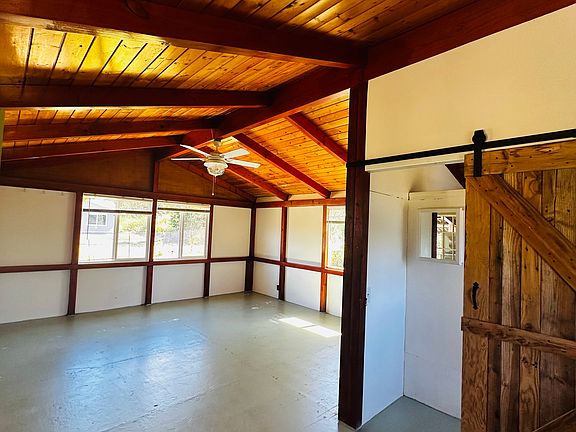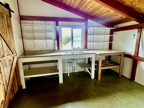 The solar power system includes 24, 100W roof mounted panels, and has been grounded with lithium ion batteries. It has been upgraded with a system control panel that allows inverter to be plugged directly into a generator to produce power on cloudy days and during storms. There is a 12 x 12 foot shed that houses all the solar power equipment and has room to store tools and lawn equipment.
