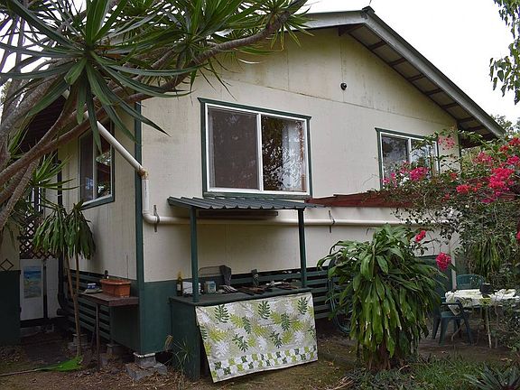 Green Sand Subdivision - This 2 bedroom/2 bath home has a separate outdoor shower off the second bedroom for maximum privacy. The original plan is from Argus Building Supply and the house was built by a local contractor. It's available turnkey, with everything included except for a few person items. There's a 3,000 gallon water storage tank in the backyard and a 200 amp electrical service connected to Helco. Walls and ceilings are insulated and the ceilings are covered with bamboo-like grass mats for a tropical fee. Floors are painted wood and ceiling fans help to keep things cool. The covered front lanai has a southern exposure and is partially enclosed - ideal for outdoor sleeping! Good location just three lots in from the main road, Ka'alu'alu Rd. Per Helco, SSPP has been paid in full. Recent upgrades include a new washer/dryer combo unit and a new water pump. Located in Lava Zone 6, Flood Zone X.