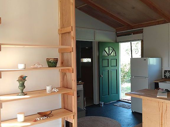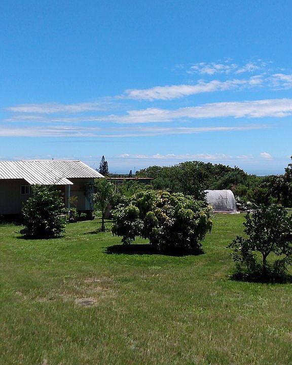 Aloha and welcome to Hoku Loa farm! This 2 acre property has two tiny homes, the cabin is 480 square feet with one bedroom, bathroom ,kitchen and living room. The kitchen with a dining nook has countertops of teak with Spanish tile behind the stovetop and the ceramic farm style sink wrapped with mahogany trim. The living room has three large windows letting in the cooling trade winds. It also has a sliding glass door that opens onto a 12 x 16 foot deck overlooking the orchard ( which has irrigation system ) and the lovely Waiohinu hills and peek a boo views of the ocean. There's a bathroom with bamboo paneled walls and bamboo framed window, a shower and residential toilet. The sink is a hammered vessel sitting on the teak vanity countertop. The bedroom has a queen size bed and a spacious closet. The owner hasn't installed flooring so the floors are painted for now. There's a large open pantry in the hallway with floor to ceiling shelves. The other dwelling is a Roberts Hawaii the bus that has been turned into a tiny home! It can be used as an Ohana/mother in law dwelling or for income. It has a bedroom in the back and the bathroom with residential toilet, shower and sink is in the center with the kitchen and living up front. The kitchen has a deep sink and granite countertops with a propane countertop stove and lots of storage. Lots of windows to view the ocean and surrounding hills. It has a covered 12 x 22 foot deck adding extra space. The bus is 240 square feet inside. Both the homes come fully furnished with dishes, pots and pans, bath and bed linens - just bring your suitcase and start enjoying Hawaii! There's also a 8x8 shed intended as an art studio but currently used as storage and there is 100 square feet of extra storage in a storage shed in back of the bus which also houses the 12 volt 2k solar system for the bus - the cabin runs on it's own 24 volt 4k solar. Each of the dwellings are on different areas of the property for privacy. Each dwelling has it's own solar and propane and water . The whole property has Public County water! On this part of the Big Island that's like having gold on your land and adds real value to this agricultural property. The orchard is on a gentle slope and the trees in it consist of : 4 varieties of avocados, 5 varieties of citrus, 3 varieties mango, 2 varieties of fruiting olives, star fruit and Surinam cherry as well as a wonderful assortment of lovely tropical trees, shrubs and plants throughout the property. The whole property is fenced in by Paniolo rock walls and welded wire steel fencing and has a gate with remote control and key pad for security . The owner is currently living in the cabin and is still working on finishing up some things to the cabin and is renting out the bus. The new owners can retain the renter as income or property manager if they aren't able to live full time on the property .