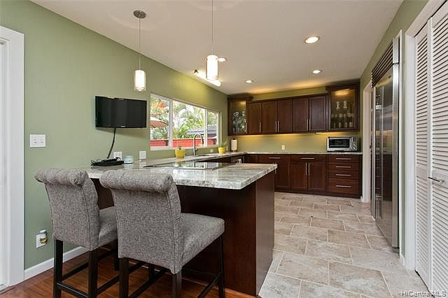 Welcome home to this keeper in Mililani Town! Impressive and meticulously cared for, single level with an open floor plan featuring: an upgraded kitchen with gourmet appliances (Sub-Zero refrigerator, Wolf cooktop and range), along with a KitchenAid dual dishwasher, walk-in pantry, a dedicated laundry area, and a built-in home office area. Relax in your own tropical oasis in the front and back yards. Beautifully manicured gardens including a waterfall with a 2.000 gallon koi pond, outdoor table, chairs and an umbrella that has the option to light up at night make for a peaceful retreat after a long day. Showings begin during First Open House, Sunday 9/18/2022 between 2-5pm. 2022-09-23