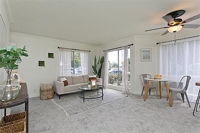 This ground floor 2 bedroom 1 bath unit comes with 2 assigned parking stalls. This unit features wall to wall carpet and vinyl flooring. For your comfort, there is a window A/C in the living room and ceiling fans in the living room and both bedrooms. Appliances include: Disposal, washer, dryer, range/oven and refrigerator. The furniture in the photos are not included in the rental. A small pet (under 25 pounds) may be considered at an additional $100 monthly charge. A pet deposit equal to one months rent will also be required. Minimum one year lease. Water and sewer included. A small pet negotiable. No smoking. Renter's insurance is required. Application Fee: $27 per adult