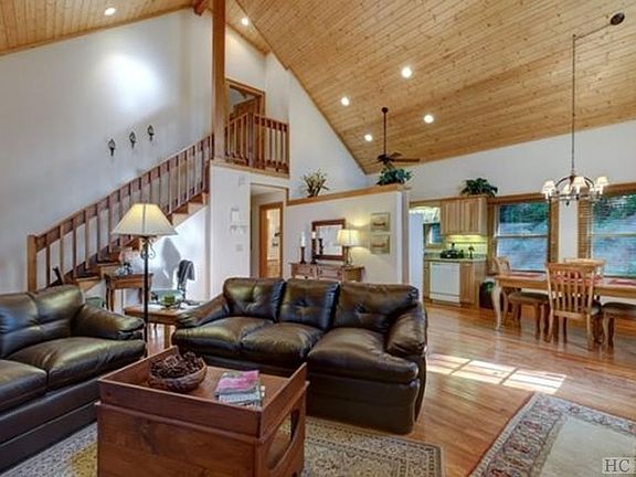 This cute and cozy 2 bedroom / 2.5 bathroom cottage is the perfect mountain getaway. Set up high at the end of a paved road, the property overlooks ridge line views and offers tons of privacy yet is less that 3 miles from Main Street Highlands. Relax on the covered front porch and take in the sounds of nature. Upon walking in the home, you are greeted by the open living room/dining room/kitchen with cathedral ceilings. Light, bright, and airy, the home is tastefully decorated throughout.