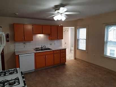 You will love coming home to this beautiful renovated one bedroom apartment. You will enjoy the quiet, bright and sunny apartment with an open floor plan. This apartment has ceiling fans in the kitchen and bedroom along with contemporary track lighting in the living room. Mini blinds and curtain rods on all the windows for your immediate privacy. Very large kitchen with 4 burner gas stove, over the stove microwave, dishwasher, and 18 cubic ft. refrigerator with lots of cupboard space and pantry closet. Bathroom is large with spacious vanity and medicine cabinet. The tub area is tiled. Bedroom has a large double closet with sliding doors. This apartment has all new carpeting. House has state of the art FIre Alarm System. Apartment is "Certified Lead Safe". Basement has assigned storage areas. Coin-op laundry room with $1.00 per load in basement. Adjoining yard with picnic area and covered grape arbor. Locked mail boxes. Dusk to dawn lighting in the hallways and parking area. Assigned parking for your vehicle. Trash disposal dumpster for your convenience. Snow plowing services. Bus stop right up the street. Minutes away from the train station. Near coffee shop, drug store, grocery store, restaurants and shopping. Easy access to Route 95. Cats and small dogs are welcome. Tenant pays for electric and gas. Small dogs and cats welcome.