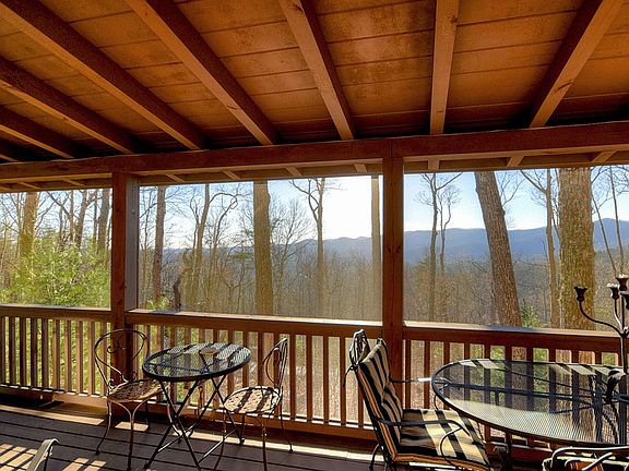 This cabin offers the perfect mtn escape with Year round Mountain views from nearly every window! Open Floor plan with Cathedral Ceiling, rock corner fireplace w/Gas logs, (can be wood burning) abundance of windows, laundry, storage and offers two master suites, one upstairs and one downstairs, both with gorgeous views. The master on the main was added in 2022 and has a beautiful stone shower. Screened in back porch with hot tub. Beautiful Sunset views of the Cohutta mountain that will take your breath away.. Easy all paved assess just minutes from B, Ridge, but tucked in the woods with Benton Mckay Hiking trail within the community! Well Loved and Maintained cabin! Freshly stained/pressure washed. Some furnishings available on a Separate Bill of Sale