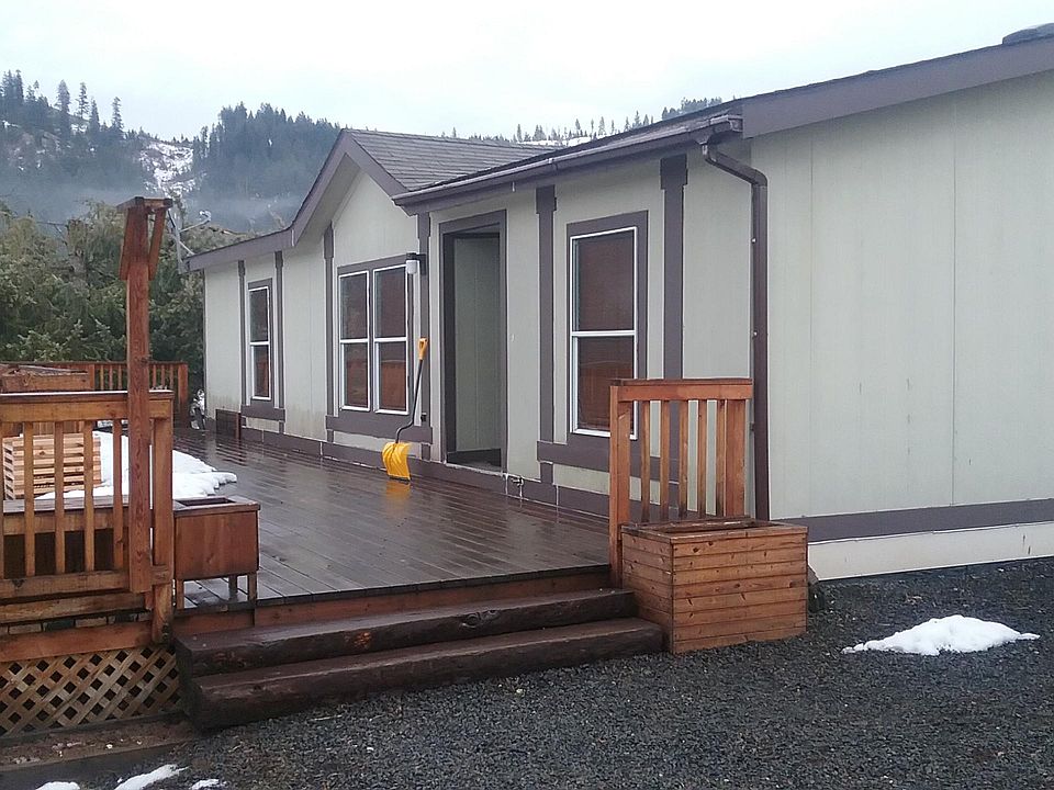 Home with a View! 3 Bed/2 Bath home located at end of culdesac; huge multilevel deck & gorgeous wide panoramic mountain & valley view. Access to gated common area on St. Maries River-Picnic area with a dock. Master suite with a view plus walk-in closet, soaking tub/separate shower stall. Laminate flooring in family room & all bedrooms; ceramic flooring in entryway, utility room, kitchen & dinette. Detached 24x24 shop with cement floor & wood stove (new stainless steel piping) to heat shop area; shop wired 220 & RV Parking for 2 RV's. Home Warranty transferable. New levelor 2'' faux wood blinds throughout home. Kitchen-large walk-in pantry with propane range & oven. Home has efficient propane hot water & furnace . Home is easy access & located near grocery stores & medical facility