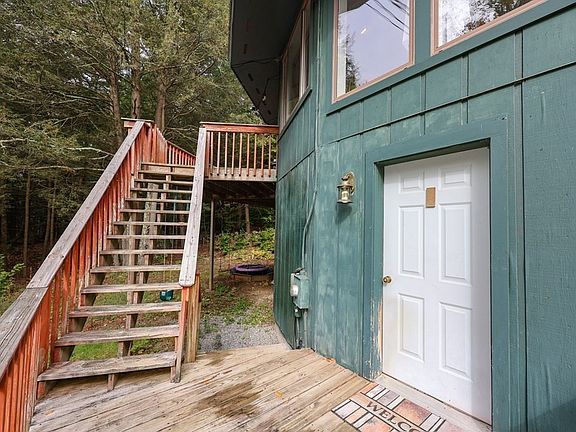 Welcome to picturesque Warner NH, where you can feel nature & peace all around you! Especially at this beautifully unique home that is nestled in over 5.5 acres of wooded privacy that abuts conservation land. The wrap around deck & floor to ceiling windows allow for wonderful natural light & gives a Birds Eye view all around! This interesting home offers 4 bdrms, each with a bathroom, & 1 with a private deck & entrance. This floor plan is very versatile with a large open concept living area, which makes great space to entertain family and friends! The main bdrm has access to the wrap around deck & a jetted tub & large tiled shower on the same level as the living area. This home offers lots of privacy, but is close to Rt 89, Sunapee, Pats Peak, Ye Ole Swimming Hole & Picnic area, trails, & a recreation area. If you like uniqueness & character, then this is the home for you! Don't wait!