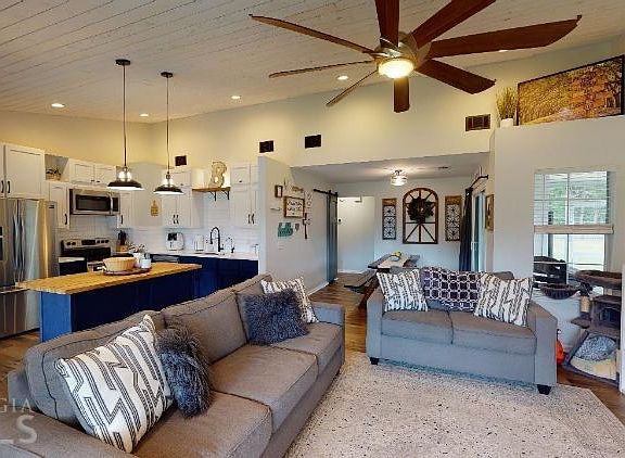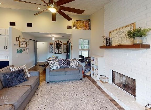 This beautifully updated 3 bedroom 2 bath home is located on a cul-de-sac. The open concept main living area features reclaimed wood ceilings and a brick fireplace. This home is equipped Stainless steel appliances, tiled bathrooms and a Hydro-Quad Water Processor System. The screen porch leads you to the large fenced back yard and the outdoor storage building. This home is a must see!