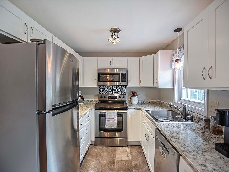 OFFER DEADLINE - Any and all offers to be submitted by Monday, July 24th at 5PM. Why rent when you can own this charming 2-bed, 1 1/2-bath updated townhome in Manchester, NH? The beautifully updated kitchen opens up to the bright and sunny dining area, ideal for entertaining. complete with a slider to the deck. The large open living room complete with an inviting wood burning fireplace, is perfect for chilly NH evenings. A 1/2 bath completes the first level. On the second level you will find a spacious vaulted ceiling primary bedroom, full bath, and second bedroom. Need more space? The loft area is great for a home office, exercise area or another bedroom if needed. Head down to the walk-out basement area complete with a 1-car garage and convenient mudroom area perfect for extra coats and shoes. Newer washer & dryer along with the furnace are found on the lower level in the spacious storage area of the basement. Natural Gas, City Water & Sewer, Central AC, and affordable condo fees! What more can you ask for? The perfect location, situated close to downtown, restaurants, major highways & shopping. Experience the best of city living with convenience at your doorstep. Your perfect home awaits! Showings to begin at the open house Saturday, July 22nd from 11am-1pm and Sunday, July 23rd from 11am-1pm. Or Schedule a private showing. Pets allowed!!