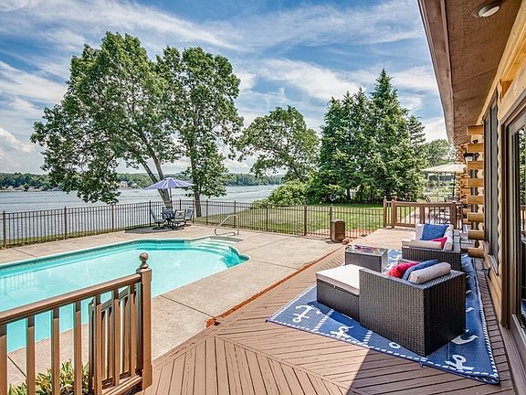 Open house cancelled due to offer accepted! Picturesque property has over 220 ft of waterfront lake & beach frontage on Lake Congamond. Completely remodeled in 2002 w a grand primary ste w a massive walk-in closet, laundry room & en-suite primary bath. Primary BR has a sitting room/bedroom/office space & a private deck overlooking the lake. Partially finished basement boasts a great family room, full bath & wine cellar! Upstairs you will find a large custom kitchen with a window seat, wood stove, island to enjoy breakfast and eat-in kitchen space. Adjacent to the kitchen is a spacious family room w/ wood burning fireplace & access to the 4 season sunroom complete w/ bar & skylights -perfect view! Multiple private decks & patio surround the in-ground pool. Complete with a massive dock, public water & sewer and A/C. Improvements include: roof, skylights, exterior stain & pool filter (2022), pool heater, new wood flooring in sunroom(2021). Minutes to everything!