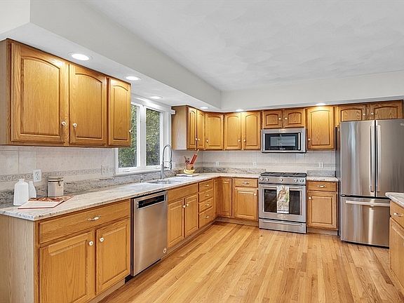 Stunning Multi level home great space for everyone! Oversized country kitchen w/granite counters,hardwood floors .Enter thru 2 sets of french doors into a wonderful enjoyable size family great room w/palladium window, vaulted ceiling, slider to large maintenance free deck.This room has lots of windows overlooking beautiful 1/2+acre yard w/ custom circular paver patio&stone fire pit. Grand dining room w/hardwood flooring.3 delightful size bedrooms & 2 recently updated full baths.1st floor home office. Lower level offers one large room w/ a 2nd kitchen fully permitted,additional rm & new full bath & wash&dryer which allows for extended family..So many updates in this home: brand new roof,on demand tankless hot water & gas heating system ( 3-5 yrs), 2 gas stoves ( in DR & family great rm),all 3 1/2 baths are recently renovated,exterior lighting, garage heated with brand new epoxy floor, some trim replaced with Azek. So much more !Come take a look !