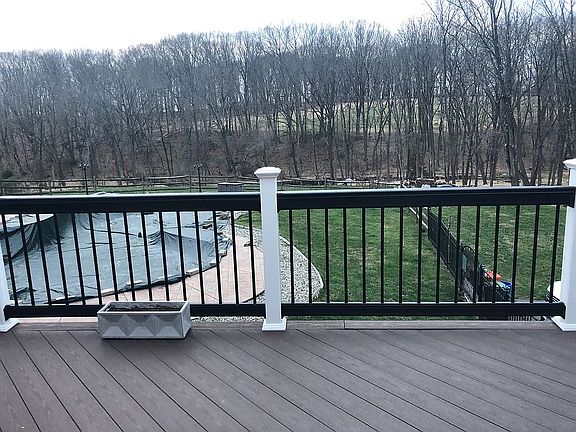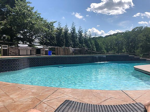 Beautifully updated colonial set on 3 private acres with in ground salt pool! 2 story cathedral family room with brick floor to ceiling fp. opens to the eat in kitchen with upgraded appliances and granite counters. Formal oversized dining room and living room, theres even an office. Upstairs is the master bedroom with cathedral ceiling and designer bathroom. Also there are 3 additional bedrooms and an updated main bath. Downstairs is the au-pair suite with a bedroom, full bath, kitchen and living/dining room leading to the private entrance and deck.