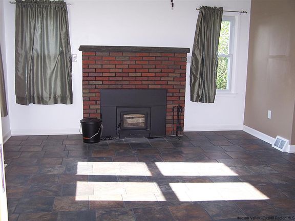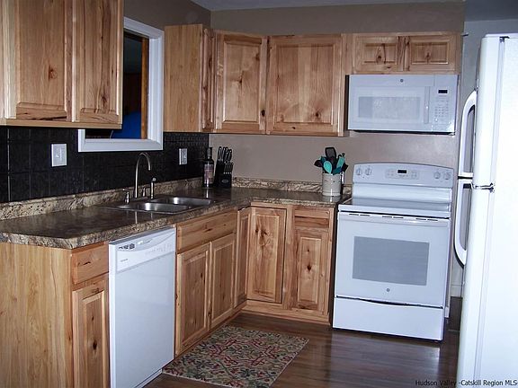 Waterfront property with re-built deck with floating dock for your boat or water-craft on the Esopus Creek. Completely renovated 2BR, 1 1/2 bath. Renovations include: new septic tank (2014). Replaced roof on house and garage (single layer); New chimney with stainless steel pipes and wood stove insert; New driveway cap; New point-well (pipe, pump & compressor); Replaced deck and dock; Updated bathroom. Renovated bathroom.(All 2015); New leech field; New vinyl siding on house and garage; renovated kitchen + appliances; New shed; New pellet stove in living room/family room; Front & rear decks replaced with vinyl; Replaced floors; Replaced garage doors. (2016) There is a dining area included in dimensions for living room. Conveniently located to shopping malls and Saugerties Village & Thruway.