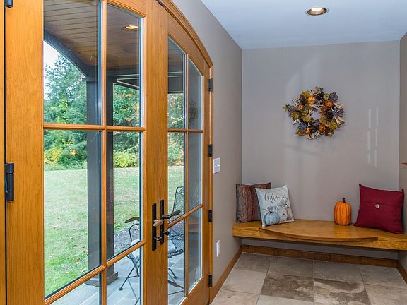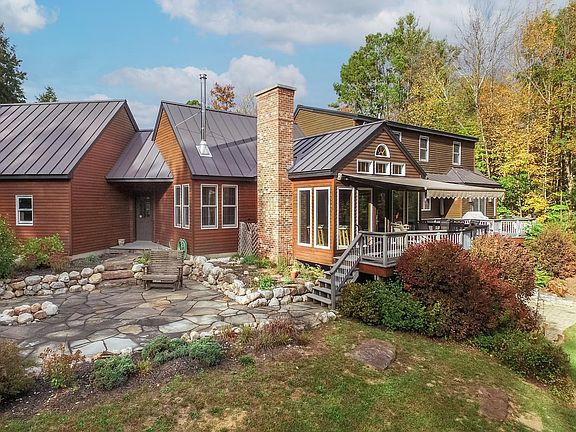 Private yet conveniently located Rutland Town home on 11.97 acres with established walking trails and plenty of woods to explore. The extensive back deck overlooks the pond with bass fish and the occasional blue heron that visits and the awning off the bonus room extends your outdoor enjoyment rain or shine. Wonderful details and finishes throughout with all the features you would expect in a Vermont home designed for enjoyment in all seasons. Open floor plan connects the kitchen to the den, living room and bonus room with several french doors leading to the extensive back deck. Intimate dining room overlooks the pond and has a wet bar feature. The master bedroom suite is located on the main level and two additional bedrooms and bath are on the second level. The lower walkout level has a cozy family room and two additional rooms and bath plus laundry. Plenty of storage throughout the home and the garage. Outside you will enjoy the large stone patio with fire pit that overlooks the pond and woods beyond and pretty perennial gardens surround this beautiful home.