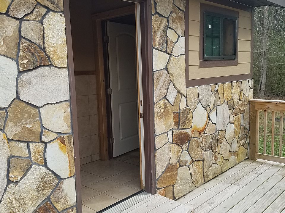 Secluded, quiet, rustic, NEW, Everything quality in this custom-built stone and concrete board house. Granite counter tops. Saunas. (one wood burning and one electric) Four baths and 4 bedrooms. No carpet. Seller says that there are actually around 2300 finished square feet, counting the attached building with extra laundry, bath and electric sauna.