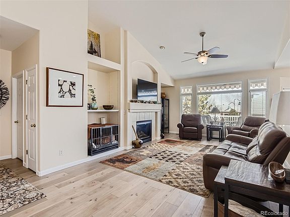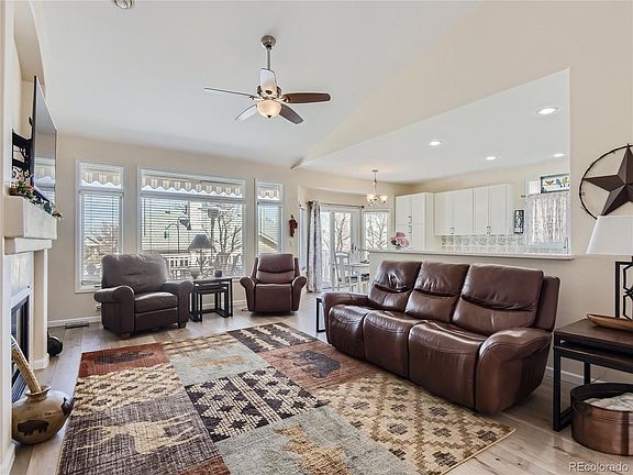 Very Stunning Updated and Remodeled Monterey Ranch Style Model Built by Richmond American Homes! Open and Airy Great Room with New Mannington Scratch and Water Proof Laminate Wood Floors that Extend into the Kitchen and Dining Room + Ceiling Fan! Gas Log Fireplace and Shelving! Freshy Painted Throughout! Kitchen has Elegant White Cabinets with Quartz Countertops, Extended Island, New Stainless Steel Appliances, Attractive Custom Backsplash, Farmhouse Kitchen Sink and Eat in Kitchen! Karastan Luxury Carpet & Pad in Bedrooms and Basement! New Vanities and Fixtures w/Tile Floor in Baths! Glass Shower Door Coming in Primary Bath! New Lighting in Entry, Dining Room and Baths! Finished Basement with Large Recreation Room, Bedroom, 3/4 Bath, Cedar Closet! Another Game/Bonus Room that could be an Easy 4th Bedroom , if needed. See Electric Console Fireplace? It Stays! + 2 Oversized Storage Rooms and Crawl Space! Brand New Lennox Furnace and A/C! New Larson Storm Door! New Gutters! Recently Replaced the Driveway and Entry/Front Porch with New Concrete! Trex Composite Deck with Electric Awning and Barbecue Grilling Area! Gleneagles Village is a Gated Active Adult (55+) Community with Clubhouse, Pool, and Many Activities! Surrounded by "The Links" Golf Course! Highlands Ranch Recreation Facilities are Optional to Join! FYI: Gleneagles Monthly HOA Fee also Includes ROOF Maintenance and INSURANCE on each Residence!