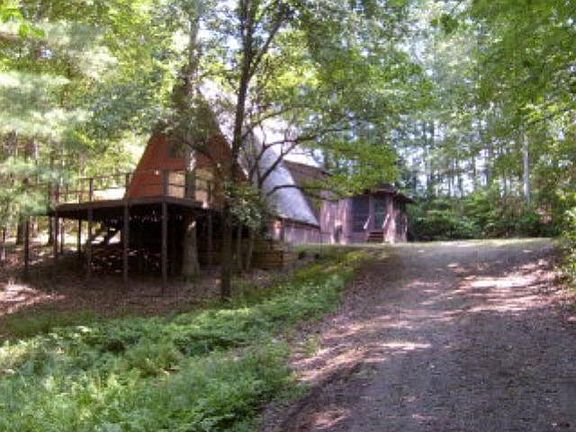 Affordable summer retreat or vacation rental with lots of hardwoods. Main floor has master BR with private bath. Spacious kitchen opens to living room with wood burning stove. Large laundry room, spiral staircase to loft, screened in side porch, large front deck over looking property. Great for entertaining, easy access to Hwy 64 yet private and secluded