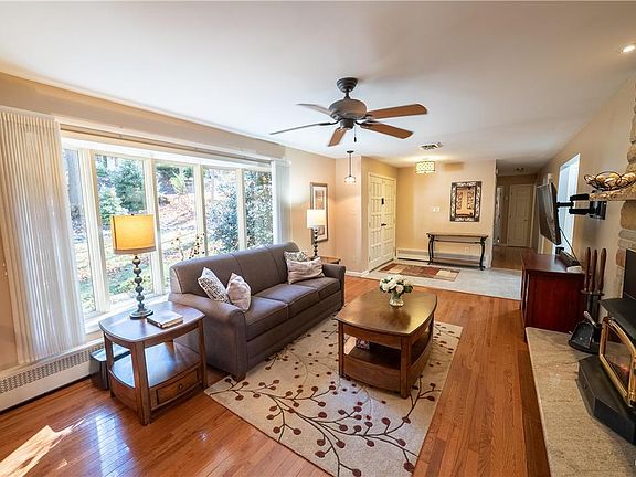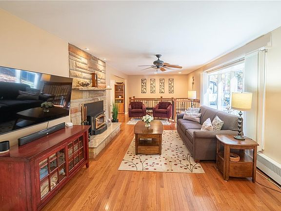 Explore the charm and comfort of 94 Chestnut Hill! Nestled on a wooded lot of just over 3/4 acre, this beautifully maintained solid-brick ranch combines privacy with natural beauty. Upon entering through the double doors, you'll discover a bright and spacious layout that flows effortlessly from room to room. The chef's kitchen is equipped with modern appliances and generous counter space, which opens to a dining area with sliding doors leading to an expansive deck, perfect for outdoor dining or simply enjoying the wooded views. Additionally, the dining area offers convenient access to the attached garage for added ease. The formal living room features a double-pane window warmed by a lovely all-brick fireplace. Down the hall is a full bathroom and three well-sized bedrooms, including a master suite. The lower level expands your living space with a welcoming family room, highlighted by a classic brick fireplace, a dining area, and a stylish wet bar tucked behind charming barn-style doors. This area opens to a tidy laundry room, while a pocket door off the wet bar enhances the flow. Indulge in the spa-like full bathroom or take advantage of the large walk-in storage room and an oversized office, which could easily be transformed into a fourth bedroom. There is even a dedicated carpentry workshop for your creative projects and DIY endeavors. The fresh paint and thoughtful updates create a bright and inviting atmosphere throughout this gem.