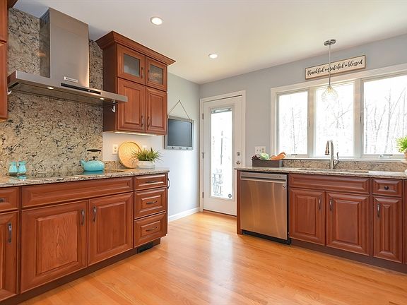 This spectacular cape is designed for easy living and entertaining.Walk into your family room with fireplace and cathedral ceiling. Sliders to an expanded trek deck that overlooks your backyard.The kitchen has stainless steel appliances,granite counters and a comfortable eating area.Dining room with hardwood flooring.First floor bedroom and full bathroom.Upstairs there are two good size bedrooms with hardwood floors and a beautifully updated full bathroom.The lower level has a spacious room that will give you lots of options-game room,exercise area,play room or just another place to gather.There is additional space for bedroom or office. Full walkout leads to your patio.Get ready to enjoy your above ground pool this summer.Updates-2023 new roof,siding,and windows,refrigerator and dishwasher new pool and deck;2022 new water softener system,exterior lighting with timers.Interior has been freshly painted,outdoor shed painted /new roof. Truly move in ready.Your new home is waiting for you!
