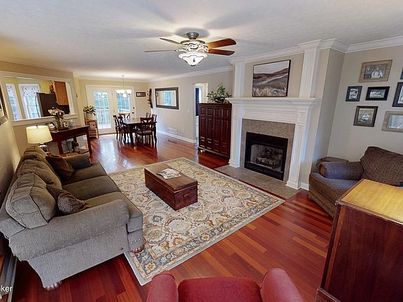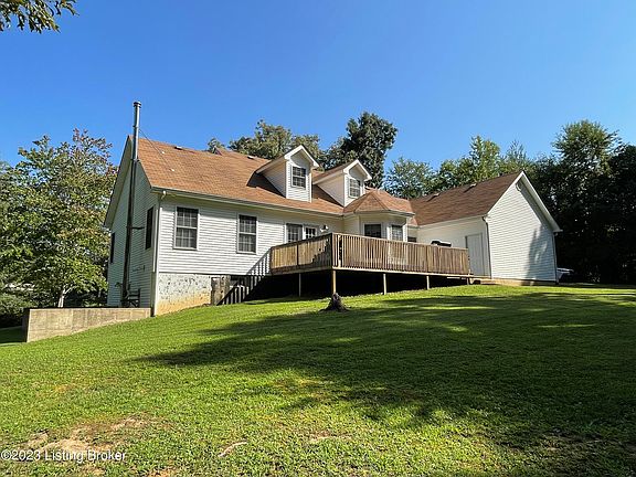 Lovely cape cod in a great location! Commute easily to Elizabethtown and Ft. Knox, keeping the country living feel. Features include hardwood floors, open living/dining area, large eat-in kitchen, split bedroom floor plan, fireplace, loads of countertop & cabinet space in the kitchen, main level laundry room, & french door access to the large back deck. Large primary bedroom with walk-in closet and private en-suite bath. Two large family/guest rooms with separate full bath and the possibility of a large 4th bedroom upstairs. The finished portion of the basement with walk-out access, space for office, family room, play room, & loads of storage options.