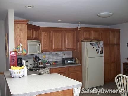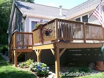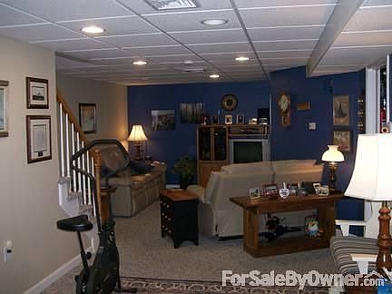 Walk into house beautiful!! Oak cab packed eat in kitchen w/tile floor and skylight. Gleaming hardwoods,neutral colors,gas fireplace. Have your morning coffee in the sunroom that overlooks private wooded area. Two bedrooms and two full baths on first floor. Full finished basement with family room, bedroom and full bath and separate heat zone. Plenty of storage space.Nice private deck. This is a over 55 community. Pets allowed!
