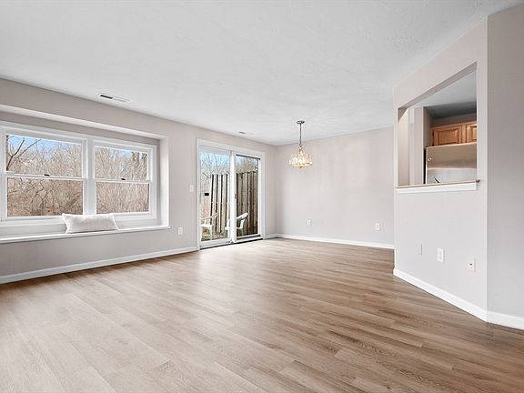 OFFER DEADLINE 3/31 at 5PM. Adorable end unit condo in Crystal Brook complex. Enter the tiled foyer of this sunny unit and continue through to the main living room and attached dining space. From there you will see a private patio to relax while listening to the babbling brook flowing nearby. The kitchen is a cooks delight with ample cabinet and counter space, stainless appliances and a pass though window and breakfast bar overlooking the living room, ideal for entertaining. Upstairs are 2 bedrooms and a sunny loft to use as an extra lounging space or a home office. The full bath has entrances from the hallway and the main bedroom as well as a separate shower and soaking tub. you'll find tons of closet space throughout the condo and more storage in the 1 car garage! March 2024 updates include: NEW vinyl plank flooring on 1st floor, NEW water heater and NEW furnace. While the upstairs carpeting can use replacing (see attached quote), the unit is in fabulous condition