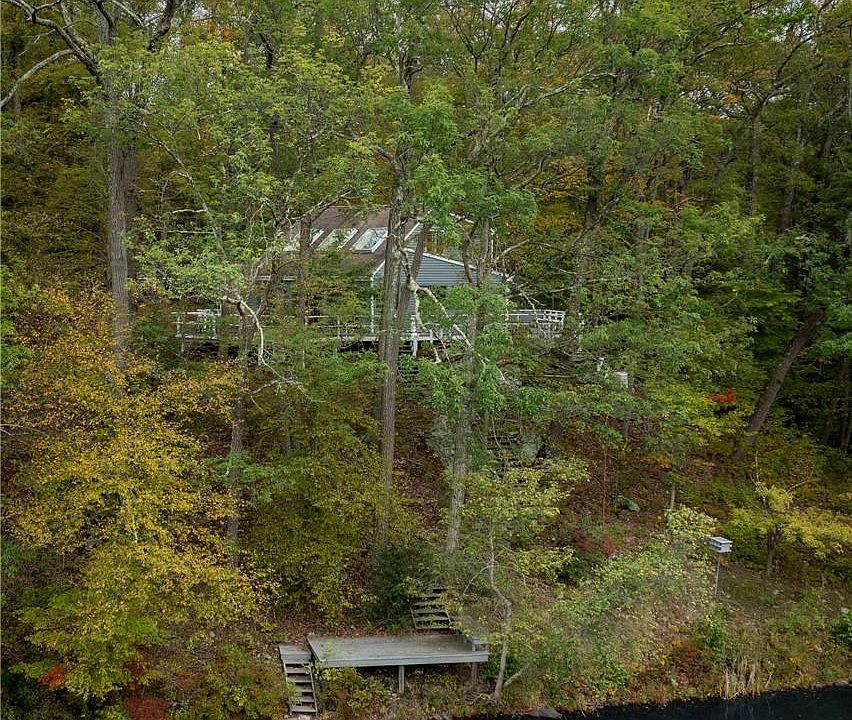 Relax on your deck, high above the shimmering lake, or amble down the hillside to your private dock and dangle your toes in the cool water. At the end of David Lane is this 2 bed, 1 3/4 bath contemporary house. On the main floor three huge skylights sit high above a terracotta tile floor.and an open kitchen with views of the lake below. Also on the main floor is a guest bedroom and bathroom. Upstairs on the second floor is a large loft bedroom and a full bath.The lower level has it's own entrance, adjacent to a large room suitable as a mudroom or an office.There a five closets throughout the house, two mini-split a/c units, a pellet stove and a washer and dryer. There is also a whole house generator, just in case.You'll be just down the road from the Appalachian Trail, Pawling Village, and the Metro north train station. If you're seeking a peaceful retreat, far from the madding crowd, under 2 hours from midtown, the tranquility of 94 David Lane could be just right.