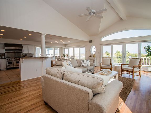 THIS REFURBISHED, BRIGHT & INVITING BEACH FRONT HOME IS READY FOR YOUR IMMEDIATE ENJOYMENT! Treat yourself and your family to a mesmerizing sunrise to begin the day, refreshing breezes & panoramic views up & down the coastline! The "flag lot" setting is tucked-in off the street, which enhances the privacy. A pool can be added - see Sketch of proposed pool in the Associated Document Section of the MLS. The thoughtfully designed & spacious floor plan offers nearly 4,000 square feet of living area w/large rooms, 4 decks & a garage! The maintenance-free exterior is accented by a huge paver parking area & buried utilities. You'll find beautiful oak flooring throughout and extensive use of glass to create a bright, inviting atmosphere! Each of the bedrooms has been positioned to offer maximum privacy and each has its own private bathroom! In addition, there is also a Powder Room on the 1st & 2nd floor, an oversized Family Room and an office. The 1st floor offers a magnificent two story entrance foyer with elliptical, oak stairs, 2 ensuite bedrooms, a Laundry Room, and a large Family Room w/doors to enhance privacy, a fireplace, powder room, built-in cabinetry, and a sliding door leading to a huge deck. The 2nd floor offers a vaulted Great Room with new furniture and tons of glass, a fireplace, built-in cabinetry & a spacious chef's kitchen offering custom cabinets, ample (granite) counter space, a Viking gas range with griddle top and a Sub-zero refrigerator. A large deck spans the width of the home & sets the stage for enjoying the sunrise, boating activity & refreshing breezes! A new retractable awning provides welcome shade from the hot summer sun or rain! There is also a powder room and a large bedroom with a private bath & deck. The 3rd floor spans from the front to the rear of the home and hosts the Master Suite, adjacent office and a beach front deck offering "bird's eye", phenomenal views! So here's your opportunity to treat yourself to something VERY SPECIAL...a beach front home!! The home is fully automated and set-up to remotely control the alarm system, heating & cooling, the door lock, security cameras, music via Sonos and to top it off, this property is being sold furnished in Turn-Key condition!