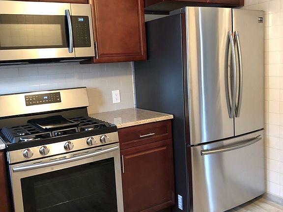 Upper floor of 2 family home. Beautiful apartment with recently renovated kitchen with stainless steel appliances and granite counter tops. Hardwood flooring throughout and central air. Lots of natural light. Washer/dryer in downstairs common area. Attic access for storage. Backyard available for use. Driveway parking for 2 cars. NYC transportation approx. 0.1 mile away (162/163 and 175 buses) with express bus service. Convenient to major highways, shopping malls, and a short walk to Maywood's downtown with shopping and dining. Master bedroom (13' 3" x 11') with master bathroom. Built in closet 5' 6" wide. 2nd bedroom (14' 7" x 9' 10") 3rd bedroom (11' x 10' 7") Additional full bathroom Water included with rent. No broker fee. Measurements are approximate. Pictures taken before current renters. No smoking allowed